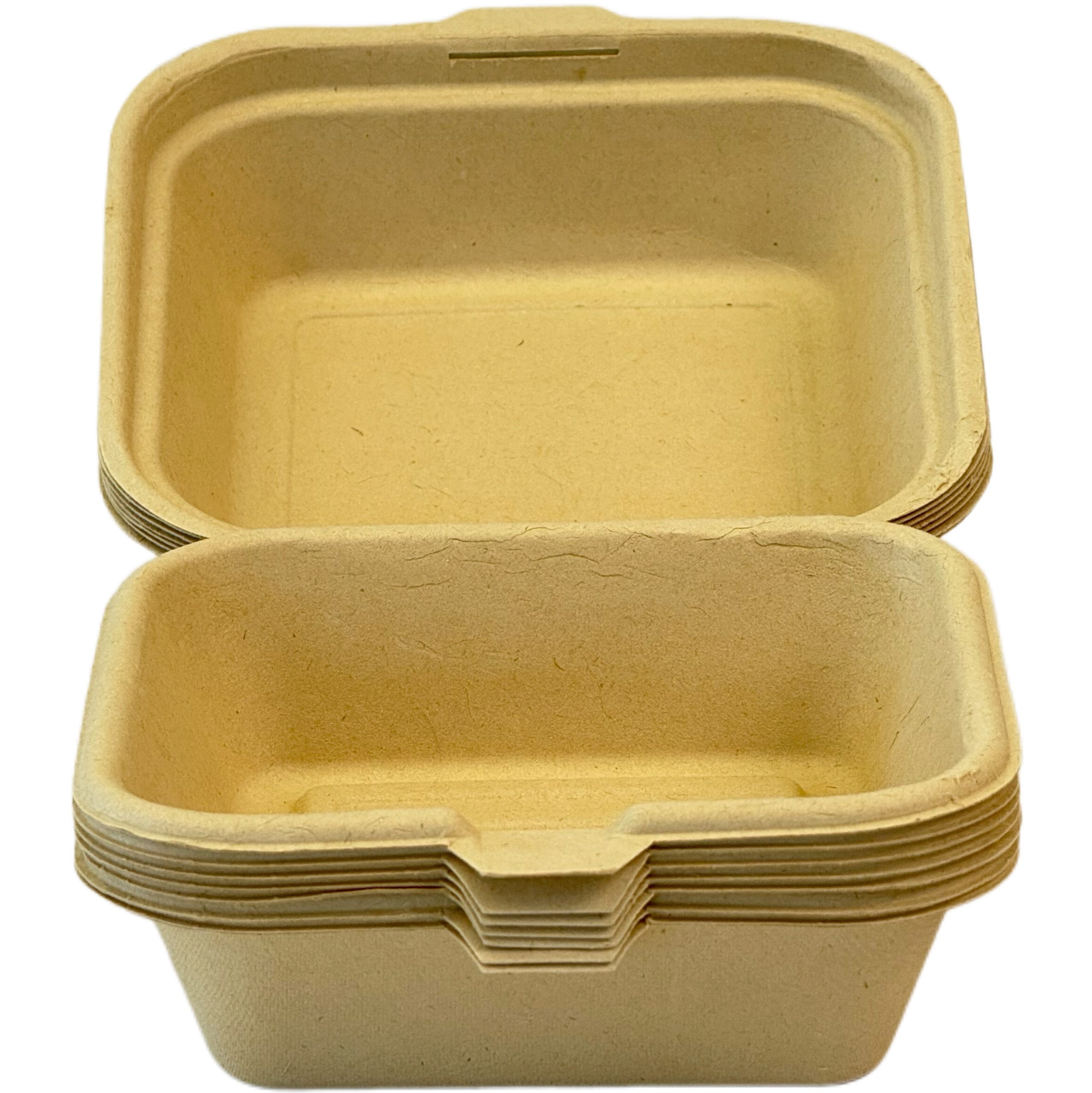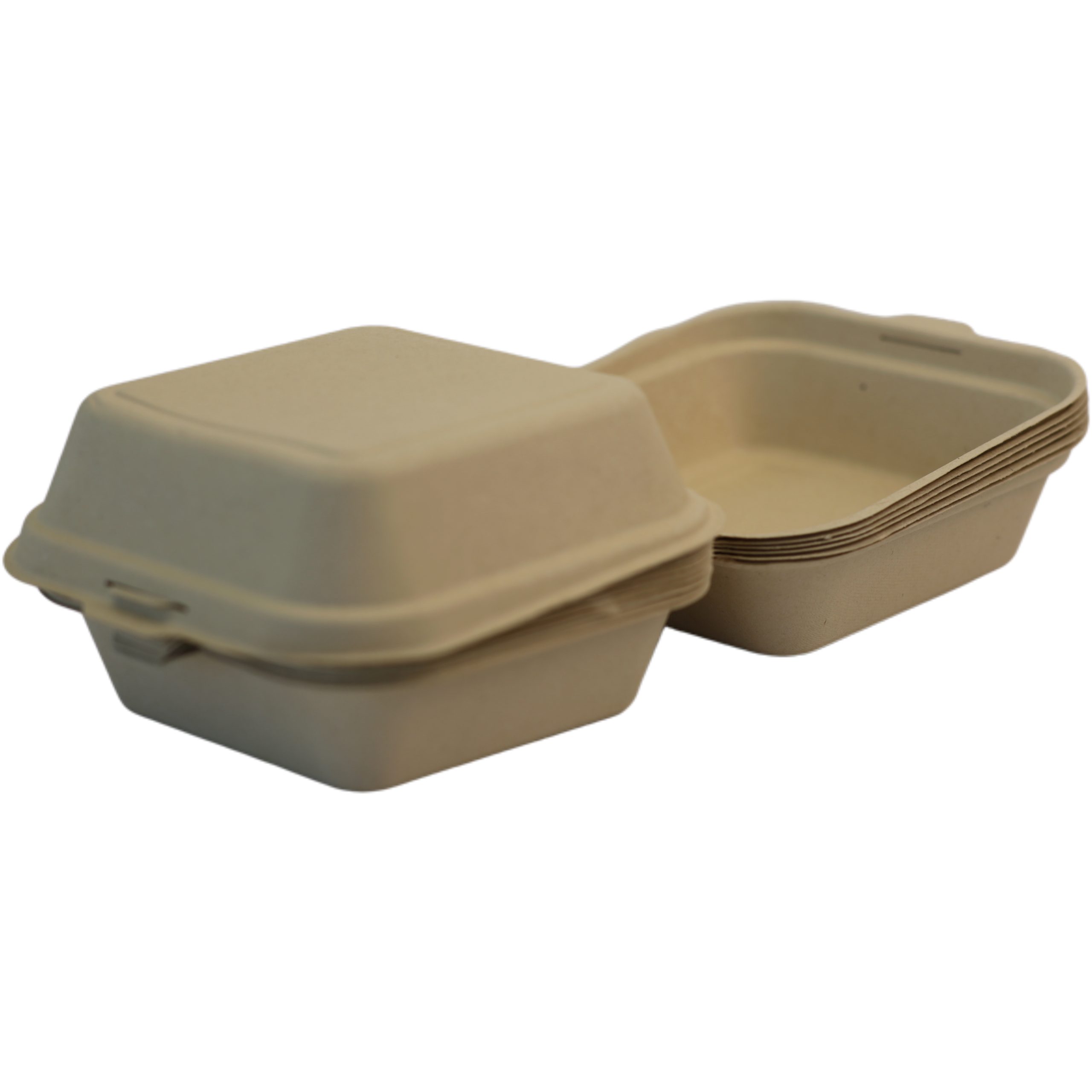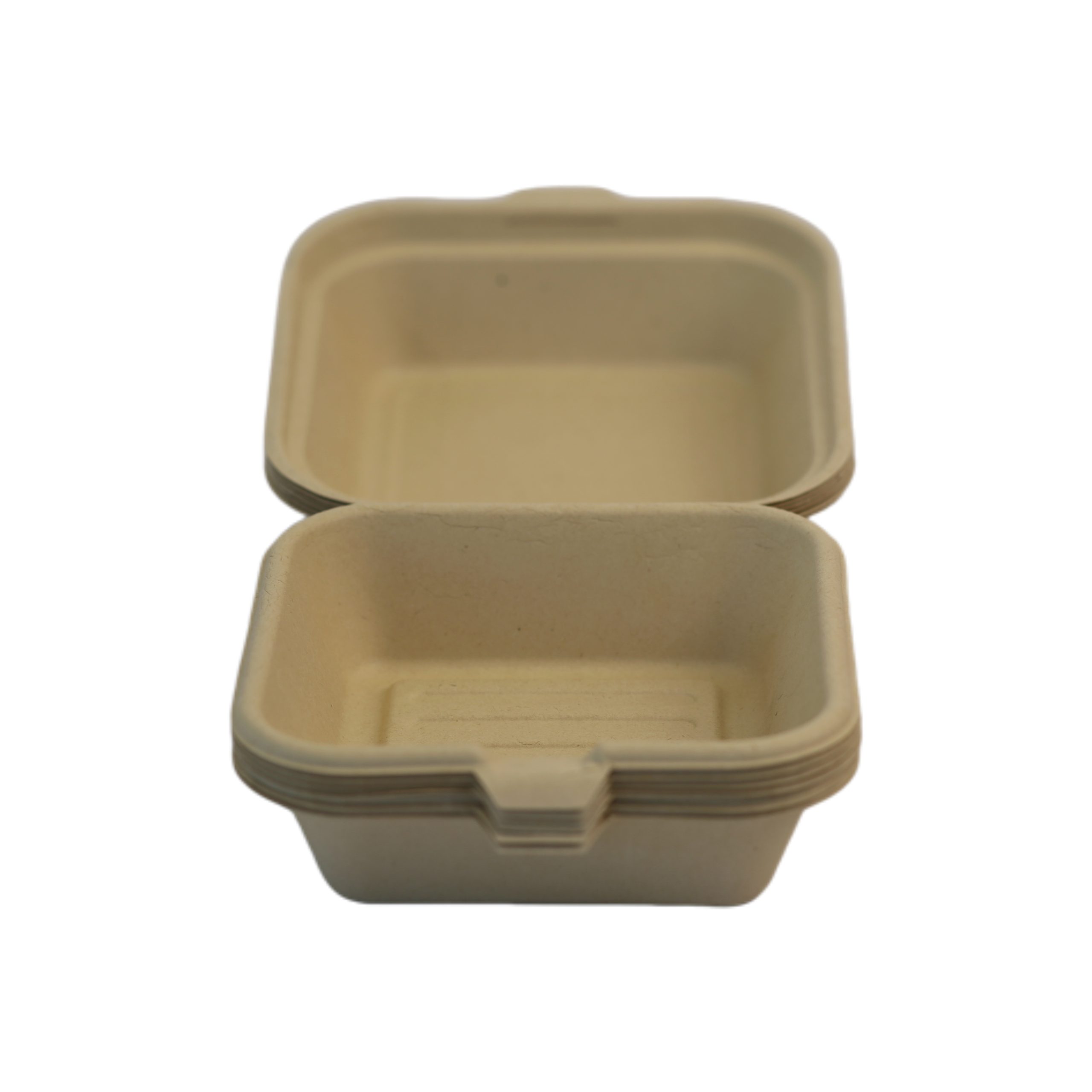 Crafted from natural bamboo fiber, this clamshell box is perfect for burgers, sandwiches, and pastries. Its secure hinged lid ensures leak-proof closure — ideal for takeaway or dine-in.