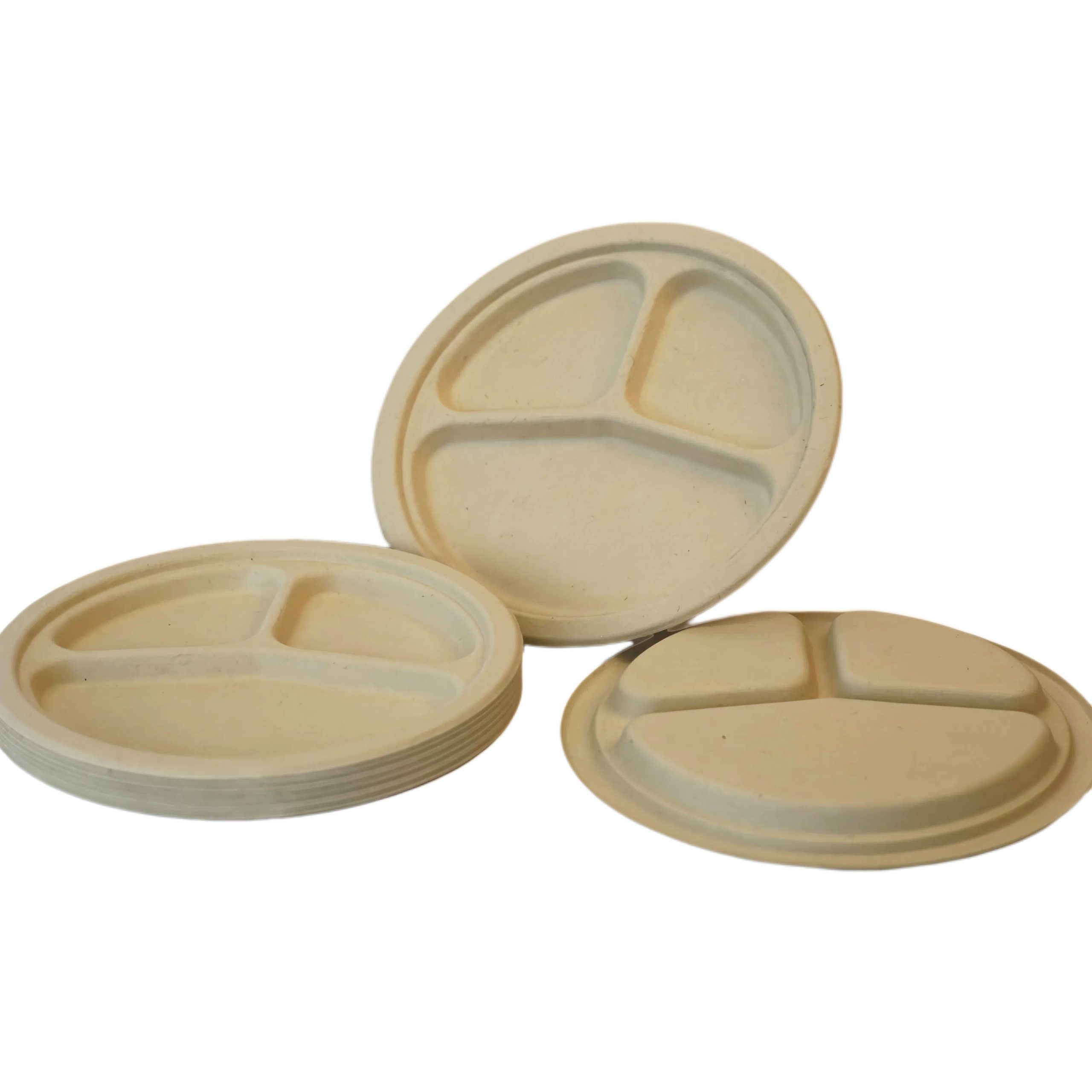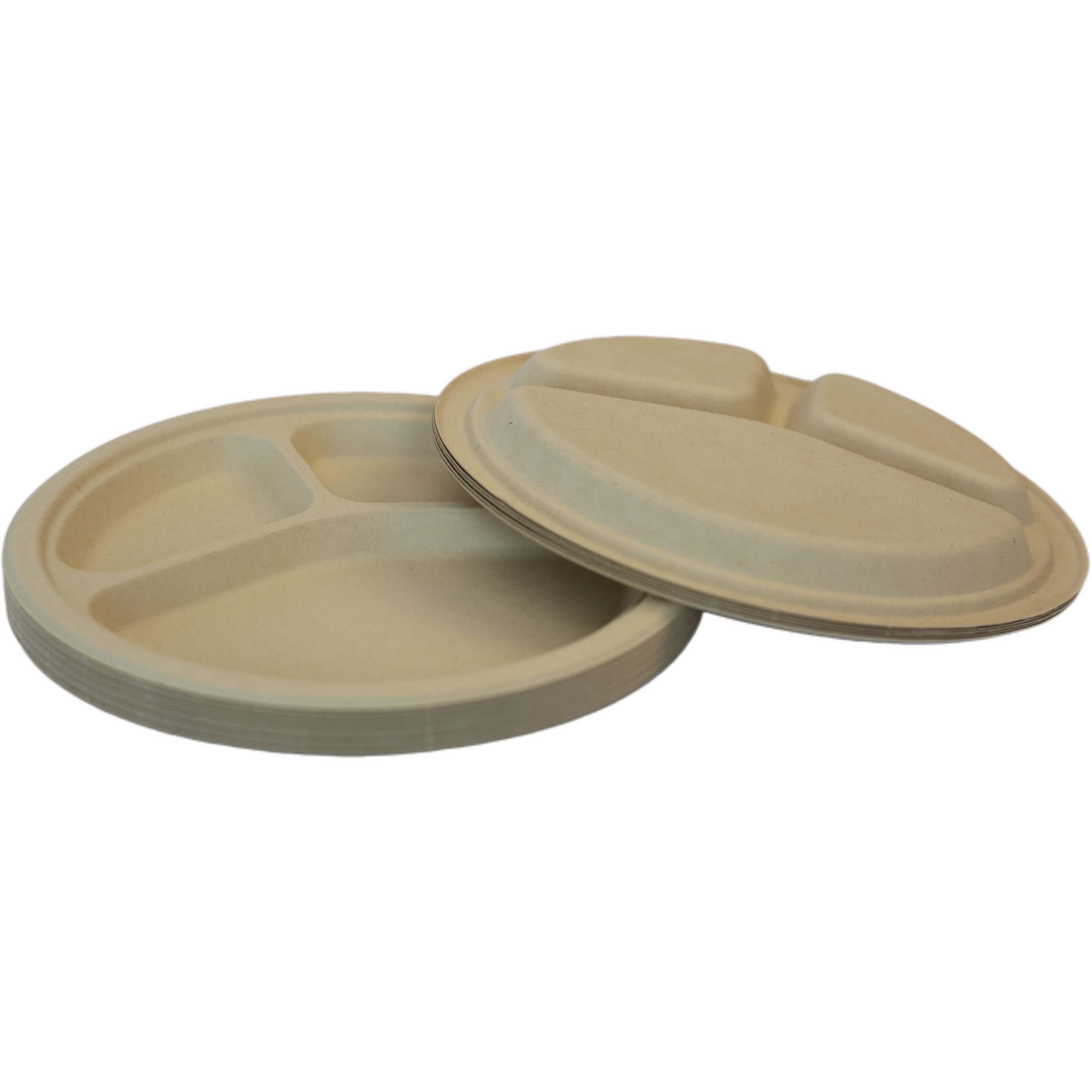 3-Compartment Bamboo Fiber Plates 9 & 10 Inch | Wholesale Eco Tableware